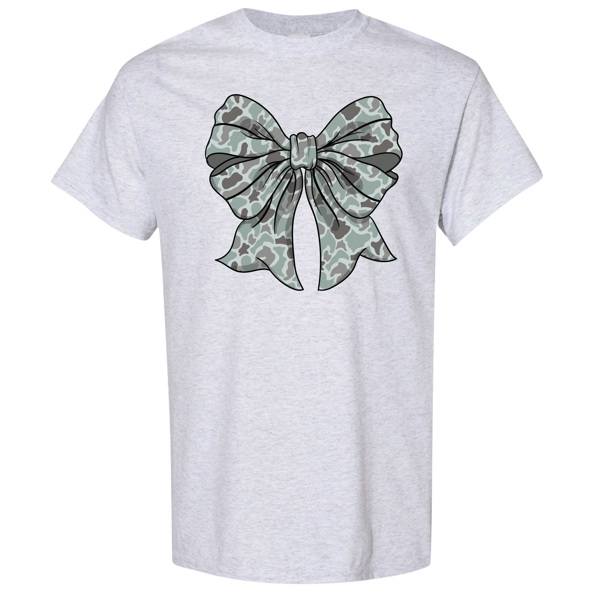 From Girlie Girl Originals, a brand that celebrates style, confidence, and a love for all things bold and fun, comes the 2780 Camo Bow-Ash. This women's screen-printed t-shirt is a standout addition to our high-quality apparel line. Known for our southern flair, we blend comfort with creativity in every piece. With this trendy tee, express yourself through fashion and add some fun, flair, and originality to your wardrobe!